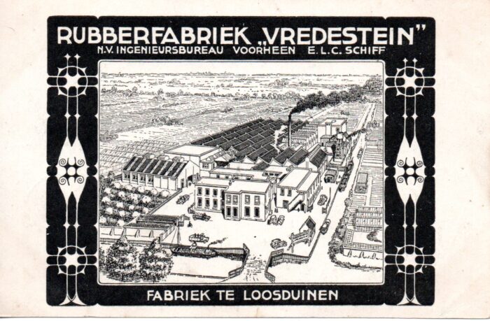 De N.V. Rubberfabriek Vredestein werd in 1909 opgericht in Loosduinen. Destijds nog een zelfstandig dorp onder de rook van Den Haag. De naam ‘Vredestein’ verwijst naar een boerderij in de buurt van Enschede, waar de oprichter zijn inspiratie vond.